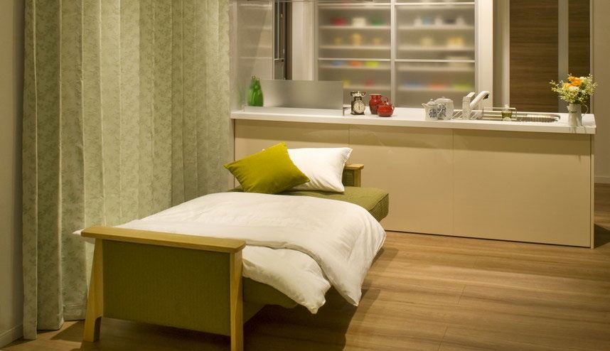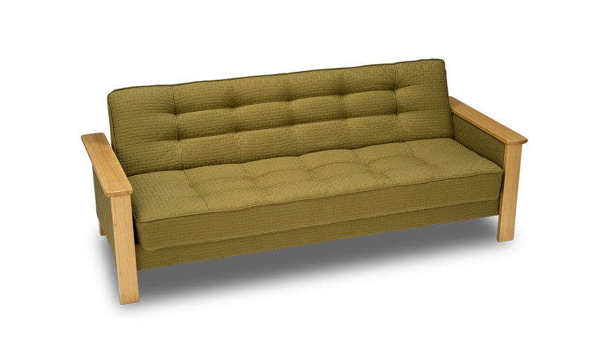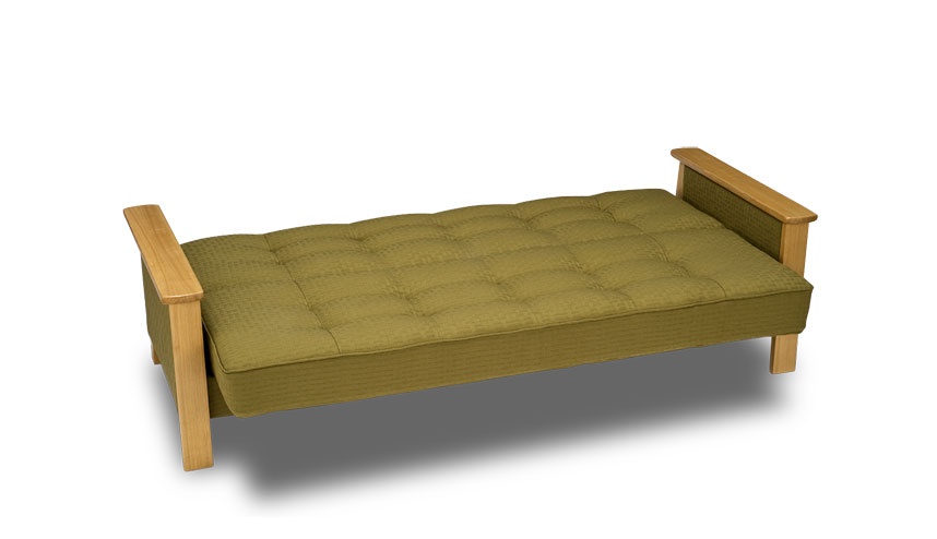 The solid wood accents on Jalan warm up any room. Its compact form can be placed right up against a wall and still be turned down into a bed.
