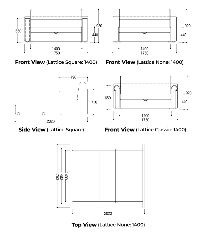 | Sleeping Area | 1970mm x 550mm 1970mm x 900mm 1970mm x 1000mm 1970mm x 1100mm 1970mm x 1200mm 1970mm x 1300mm 1970mm x 1400mm |