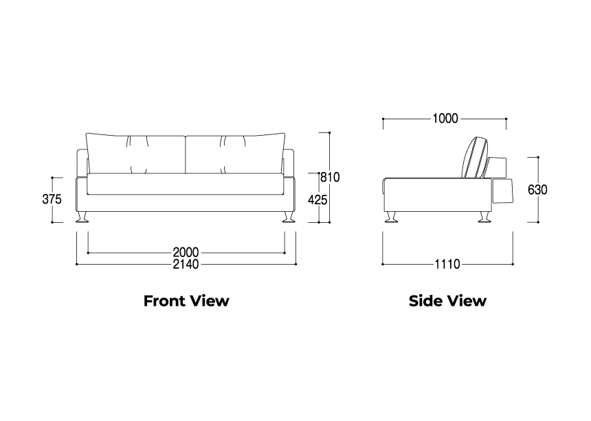 | Fabric | Colour of model shown is Gala T-4104 (S7)for the mattress and cushion covers and Coral Grey T-4275 (S5) for the frame. Please inquire about the full line of fabrics available for this model. |