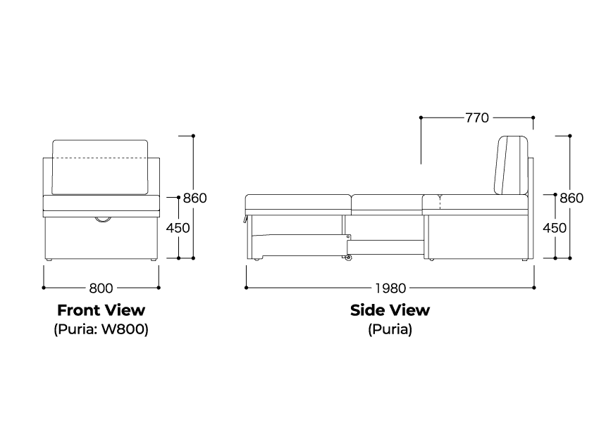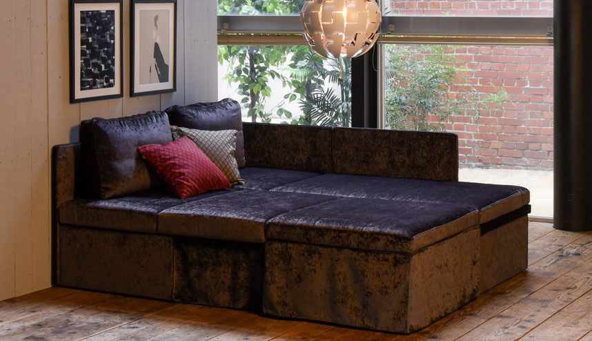Puria & Wanita are a flexible sectional set that combine to make a king size bed up a width of 1970mm.