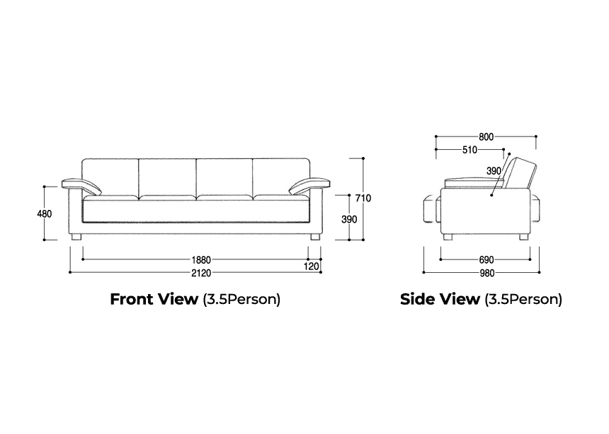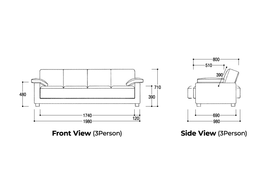 | Notes | 3 person (3P) or spacious 3 person (3.5P). Can convert into a bed even right against the wall. Storage space under the seat (e.g. 3 person model has a space measuring W1580×D630×H90 & spacious 3 person W1710xD630xH90). |